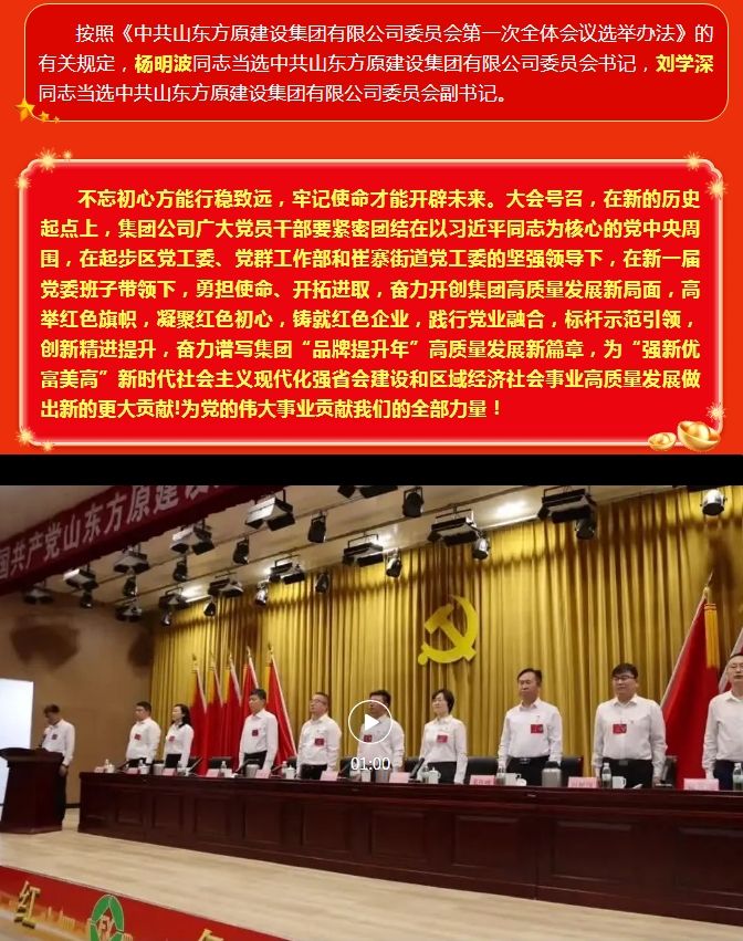 中國共產黨山東方原建設集團有限公司委員會一次黨員大會勝利召開!
