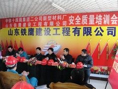 2010年5月9日,我公司隆重舉行了2010年度安全 質量 培訓宣誓大會,會議上泰山區技術監督局謝局長、泰山區安檢局劉科長、徐家樓辦事處劉部長、安檢辦胡主任、安檢辦胡副主任、局集團二公司董事長助理苑總、安檢部朱部長,分別發表了重要講話。