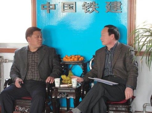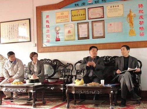 總經理楊明波與工商聯黨組書記劉汝田、部長王萍(右一)現場交流