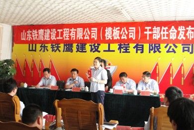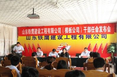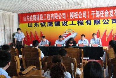 2012年5月2日早9:00,山東鐵鷹建設工程有限公司干部任命發布會在會議室召開。對榮祥峰、趙福偉、郭慶國、白代柱、宋金萍、張琨等6位同志做出任命發布,并頒發證書。公司領導與任命干部親切合影留念。