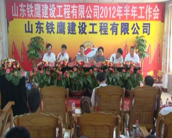 2012年8月15日13:00,在莊嚴的歌聲中,山東鐵鷹建設工程有限公司2012年度半年工作總結暨目標承諾兌現表彰大會在公司會議室隆重召開。大會分為三個內容:一工作總結報告會,二目標兌現承諾及下半年承諾,三表彰會。