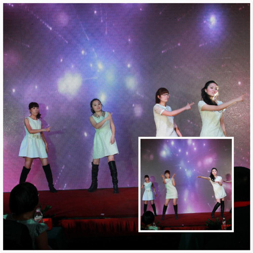上圖:楊總同女兒希希(白裙子)親情演唱《爸爸去哪兒》