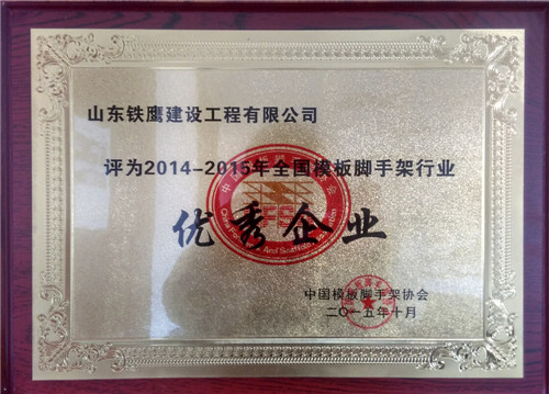 熱烈祝賀我公司榮獲2014-2015年全國模板腳手架行業“優良企業”稱號