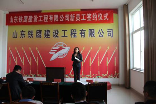 2016年4月23日在公司一樓大會議室舉行了山東鐵鷹建設工程有限公司新員工轉正簽約儀式,參會的有公司副總經理榮祥峰,副總經理趙建軍,副總工梁海斌、各部門負責人及轉正人員。