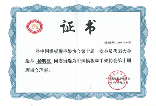 熱烈祝賀董事長楊明波當選為中國模板腳手架協會第十屆理事會理事