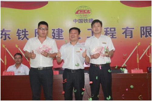 總經理楊明波頒發(fā)獎金并合影留念